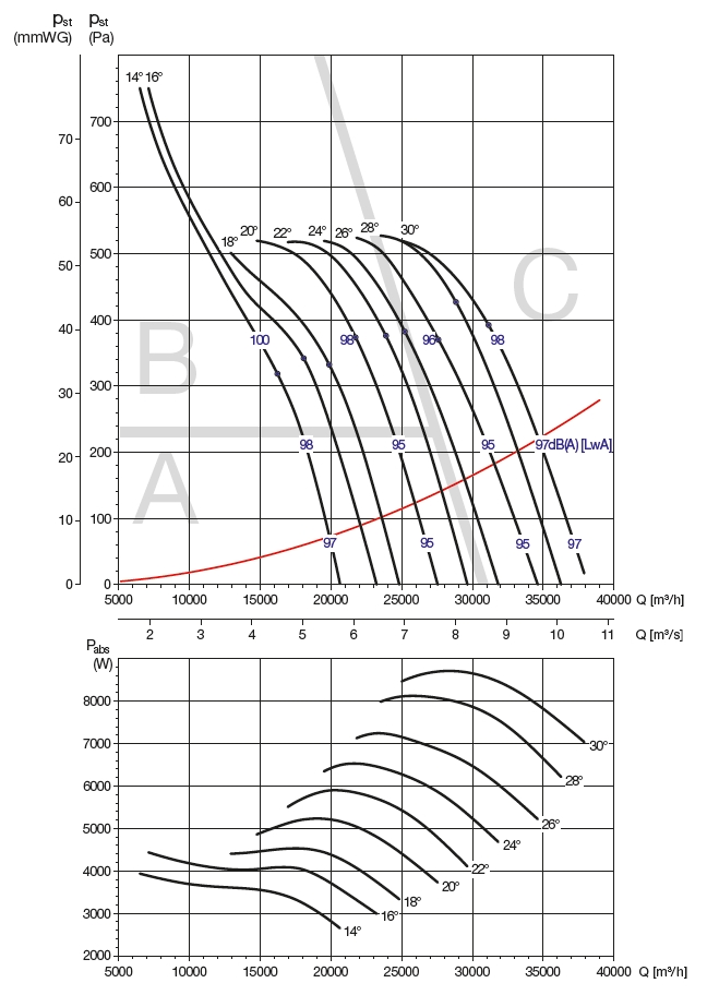 ![]() | Hluk Hluk emitovaný ventilátorem je uveden v charakteristikách ventilátoru. Odečtením korekcí (v tabulce u jednotlivých charakteristik) od hodnoty akustického výkonu LwAtot [dB(A)] uvedené ve výkonových charakteristikách ventilátoru v jednotlivých zónách se získá hodnota akustického výkonu LwA [dB(A)] ve středu oktávových pásem. | |