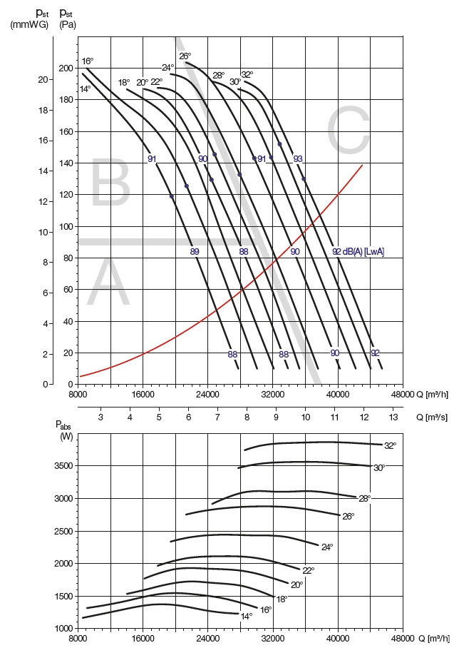 ![]() | Hluk Hluk emitovaný ventilátorem je uveden v charakteristikách ventilátoru. Odečtením korekcí (v tabulce u jednotlivých charakteristik) od hodnoty akustického výkonu LwAtot [dB(A)] uvedené ve výkonových charakteristikách ventilátoru v jednotlivých zónách se získá hodnota akustického výkonu LwA [dB(A)] ve středu oktávových pásem. | |