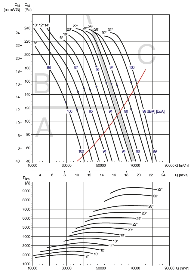 ![]() | Hluk Hluk emitovaný ventilátorem je uveden v charakteristikách ventilátoru. Odečtením korekcí (v tabulce u jednotlivých charakteristik) od hodnoty akustického výkonu LwAtot [dB(A)] uvedené ve výkonových charakteristikách ventilátoru v jednotlivých zónách se získá hodnota akustického výkonu LwA [dB(A)] ve středu oktávových pásem. | |
