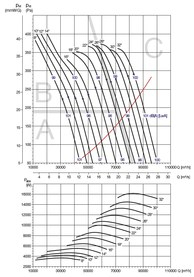 ![]() | Hluk Hluk emitovaný ventilátorem je uveden v charakteristikách ventilátoru. Odečtením korekcí (v tabulce u jednotlivých charakteristik) od hodnoty akustického výkonu LwAtot [dB(A)] uvedené ve výkonových charakteristikách ventilátoru v jednotlivých zónách se získá hodnota akustického výkonu LwA [dB(A)] ve středu oktávových pásem. | |