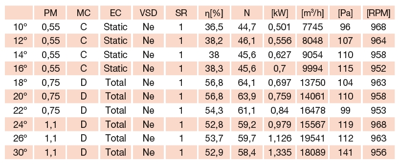 | otáčky [min-1] | počet listů | příkon [kW] | napětí [V] | proud [A] | průměr připojení [mm] | hmotnost krátká skříň [kg] | hmotnost dlouhá skříň [kg] |