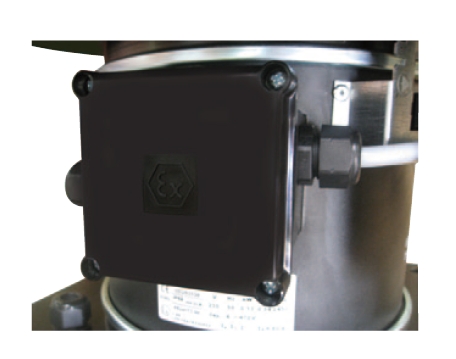 ![]() | Svorkovnice Svorkovnice je v nevýbušném provedení umístěna na motoru včetně nevýbušného kondenzátoru. Krytí IP55. | |