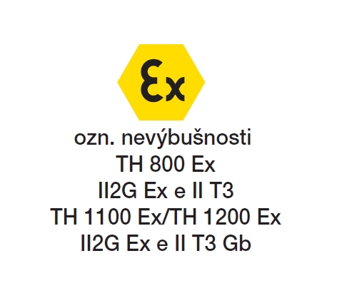 ![]() | Skříň Skříň je z antistatického plastu (TH-800 Ex) nebo z ocelového plechu opatřeného černým polyesterovým lakem (TH-1100 Ex, TH-1200 Ex). Skříň obsahuje ochranu proti vniknutí cizích těles. | |