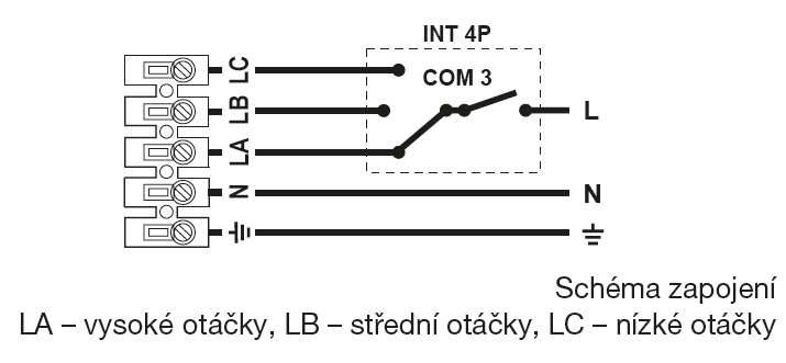 ![]() | Regulace otáček Regulace otáček se provádí standardně přepínačem, při požadavku na plynulou regulaci změnou napětí elektronickými nebo transformátorovými regulátory. Při použití elektronických fázově řízených regulátorů se může zejména při nízkých otáčkách projevit intenzivní parazitní hluk. V tom případě je nutno použít transformátorovou regulaci. | |
