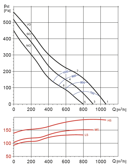 Vysoké / střední / nízké otáčky. * akustický tlak vyzářený do okolí je měřen ve vzdálenosti 3 m ve volném poli s připojeným potrubním na straně sání