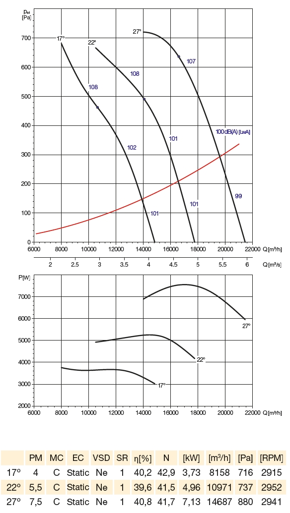![]() | Hluk Hluk emitovaný ventilátorem je uveden v charakteristikách ventilátoru. Odečtením korekcí (v tabulce u jednotlivých charakteristik) od hodnoty akustického výkonu LwAtot [dB(A)] uvedené ve výkonových charakteristikách ventilátoru v jednotlivých zónách se získá hodnota akustického výkonu LwA [dB(A)] ve středu oktávových pásem. | |