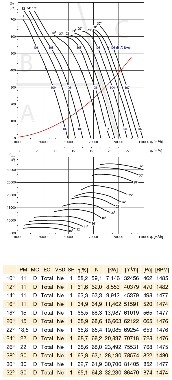 ![]() | Hluk Hluk emitovaný ventilátorem je uveden v charakteristikách ventilátoru. Odečtením korekcí (v tabulce u jednotlivých charakteristik) od hodnoty akustického výkonu LwAtot [dB(A)] uvedené ve výkonových charakteristikách ventilátoru v jednotlivých zónách se získá hodnota akustického výkonu LwA [dB(A)] ve středu oktávových pásem. | |
