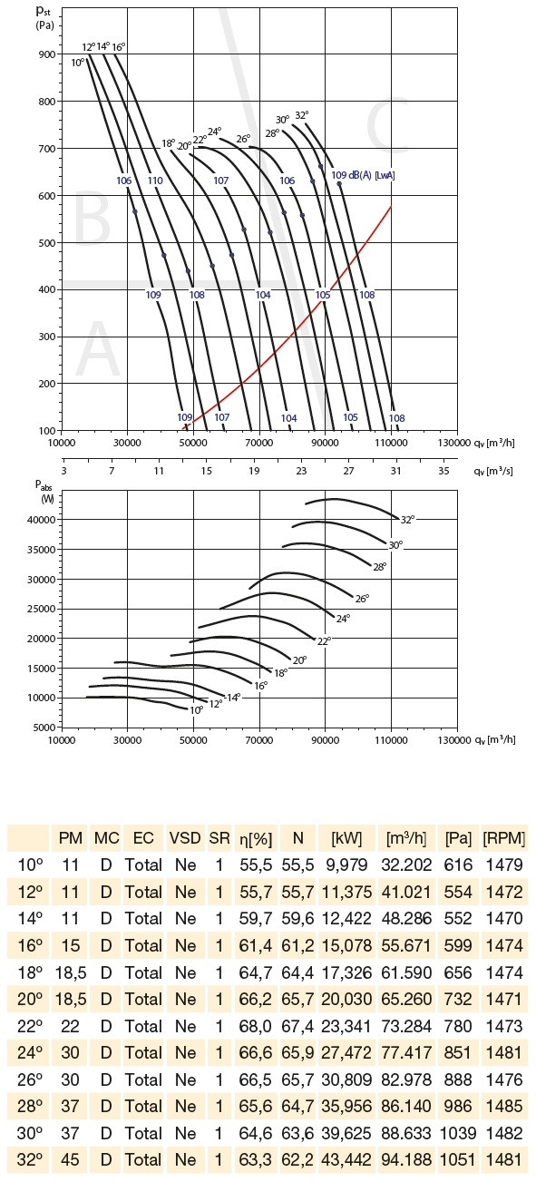 ![]() | Hluk Hluk emitovaný ventilátorem je uveden v charakteristikách ventilátoru. Odečtením korekcí (v tabulce u jednotlivých charakteristik) od hodnoty akustického výkonu LwAtot [dB(A)] uvedené ve výkonových charakteristikách ventilátoru v jednotlivých zónách se získá hodnota akustického výkonu LwA [dB(A)] ve středu oktávových pásem. | |