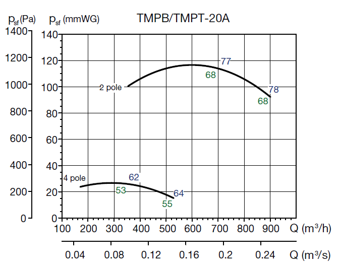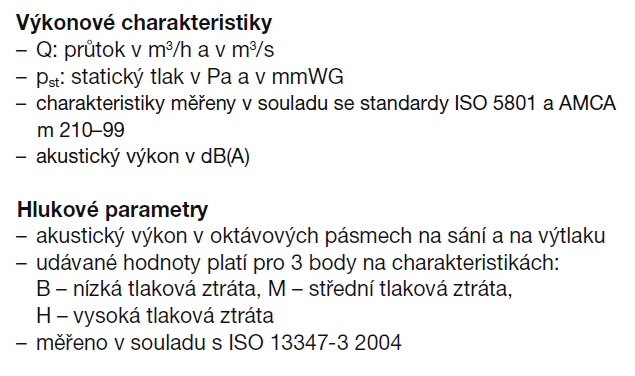 * akustický tlak měřen ve volném akustickém poli ve vzdálenosti 1,5 m na straně sání v prostředním bodě výkonové křivky