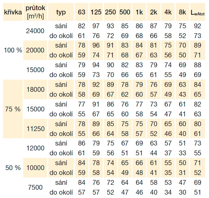 * akustický tlak je měřen ve volném poli ve vzdálenosti 6 m
