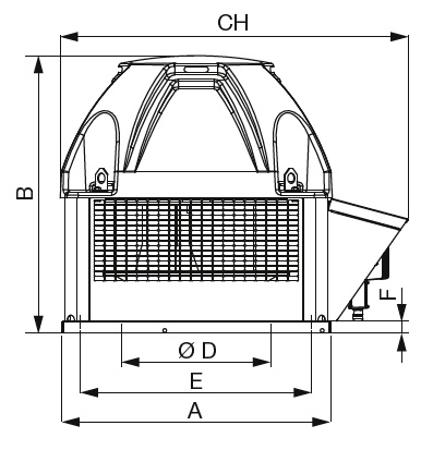 ![]() | Skříň Skříň je konstruována pro horizontální (TNHB, TNHT) nebo vertikální (TNVB, TNVT) výfuk vzduchu. Podstavec ventilátoru je z ocelového pozinkovaného plechu, galvanicky pokovený je i rám a držáky motoru. Konstrukce ventilátoru optimalizuje proudění vzduchu, což zvyšuje účinnost a snižuje hluk. Motor je připojen k hřídeli ventilátoru napřímo. Stříška, nosníky, kryt ovládání popř. deflektory pro vertikální výstup vzduchu jsou lakované barvou RAL 7024 (šedá) s velmi dobrou odolností proti povětrnostním vlivům a UV záření. | |
