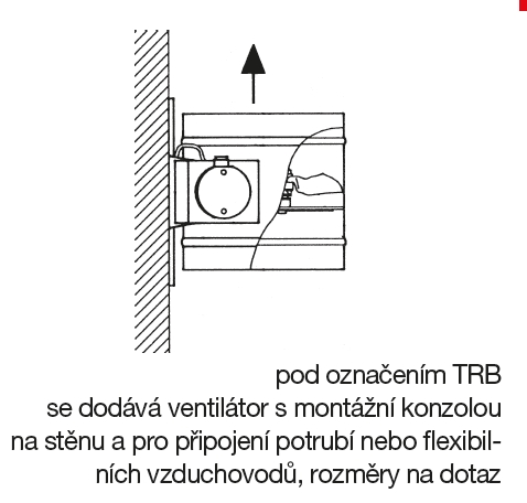 ![]() | Montáž Montáž ventilátorů v každé poloze osy motoru. Dodává se s montážní konzolou na stěnu a pro připojení potrubí nebo flexibilních vzduchovodů. | |