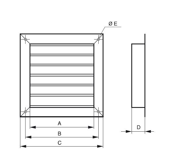 ![]() | Informace • rám z pozinkovaného plechu • samotížné lamely z Al plechu (TRK) nebo z pozinku (TRKS) • barva přírodní • lamely otočné na ose • pozední rám na zakázku • otvory E nejsou standardně vyvrtány, v případě potřeby možno dodatečně vyvrtat • TRK s hliníkovými lamelami lze použít jen do rychlosti proudění 7 m/s a proto se standardně dodávají jen do velikosti 315. | |