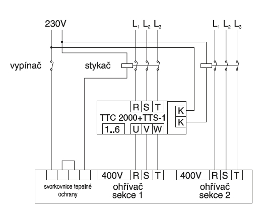Ve spojení s regulátorem TTC 2000 je určen pro regulaci do 27 kW ve dvou stupních - plynulý