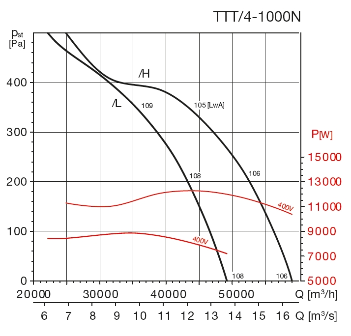 * akustický tlak ve volném poli ve vzdálenosti trojnásobku průměru oběžného kola (minimálně 1,5 m); ** regulace možná pouze do teploty vzdušiny, resp. okolí 40° C