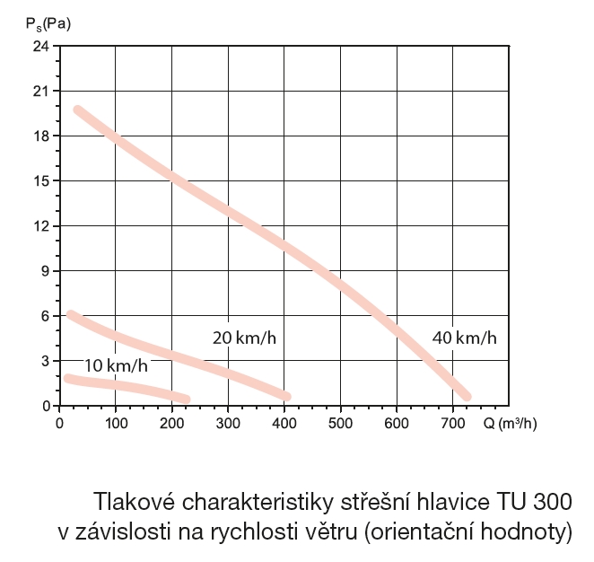 ![]() | Pokyny Průtok zajišťovaný větrací hlavicí je zásadně závislý na povětrnostních podmínkách, tzn. na termickém vztlaku a síle větru. Z uvedeného důvodu se hlavice nesmějí používat pro větrání obytných prostor, kde je požadován kontrolovaný průtok. Hlavice lze použít pouze jako ukončovací prvek na hlavní sběrné vzduchotechnické potrubí. Podle rozhodnutí projektanta lze použít hlavice pro větrání dvouplášťových střech, je třeba zohlednit výrobcem deklarovanou relativně menší odolnost proti dešti. | |