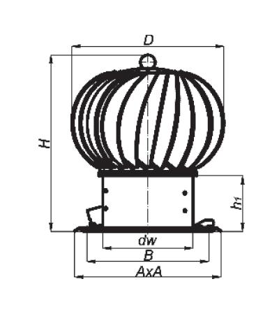 ![]() | Skříň Skříň ventilační hlavice je tvořena hliníkovým oběžným kolem, které je uchyceno na pozinkové podstavě. Jednotlivé typy hlavic se liší provedením podstavy viz rozměrové schéma. Hlavice se čtyřhrannou základnou jsou odklopné (s výjimkou TU 300 standard). Maximální teplota vzduchu 150 °C. | |