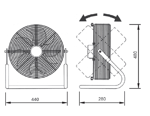 speciálně optimalizované oběžné kolo | přenášecí madlo, nastavitelná poloha ventilátoru |