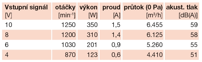 | Ø připojení [mm] | otáčky [min-1] | průtok (0 Pa) [m3/h] | výkon [W] | napětí [V] | proud [A] | akust. tlak [dB(A)] | hmotnost [kg] | regulátor |