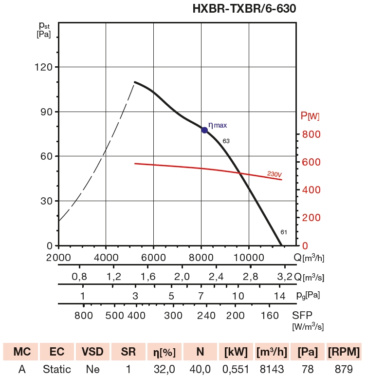![]() | Hluk Hluk emitovaný ventilátorem je uveden v tabulkách, měření je prováděno ve vzdálenosti rovné trojnásobku průměru oběžného kola (minimálně však 1,5 m) na straně sání. | |
