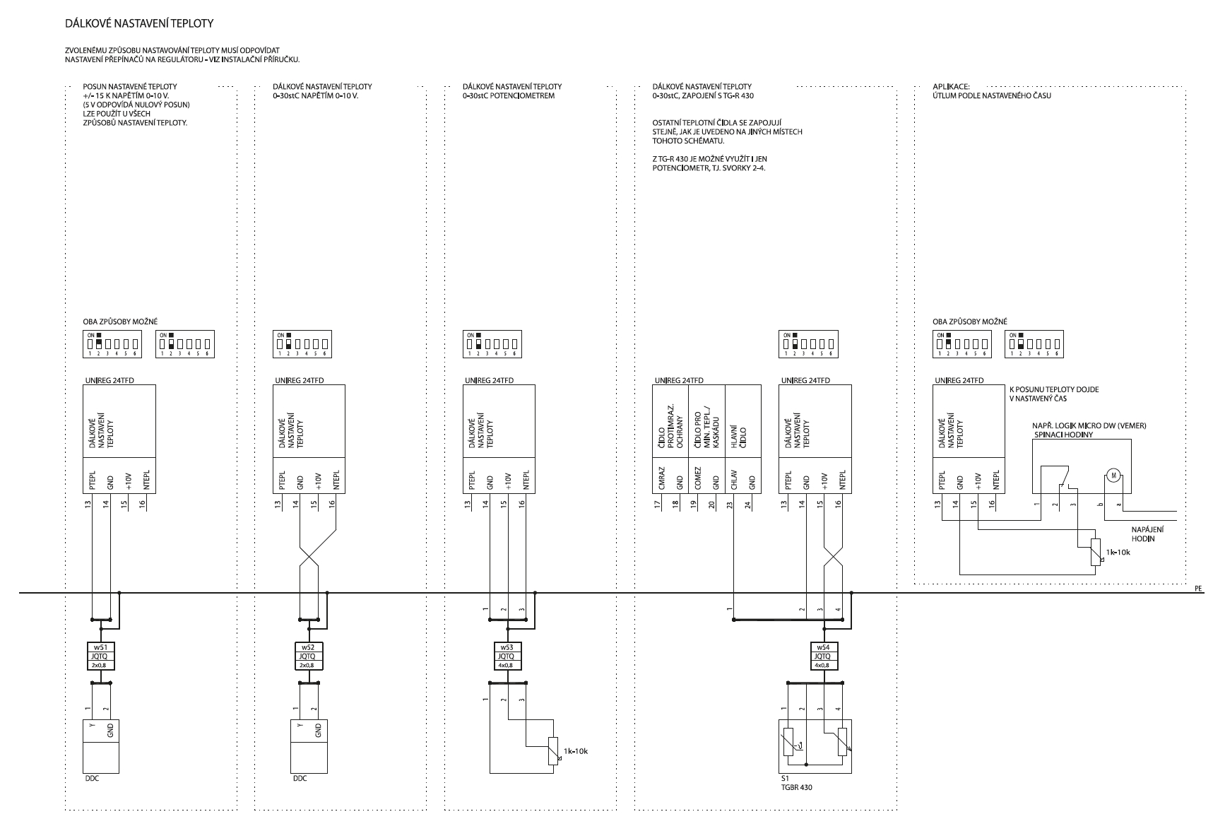 Pomocí přepínačů pod krytkou svorkovnice lze nastavit typ regulace. Důležité: Nastavení přepínačů a skutečné umístění teplotních čidel si vždy musí odpovídat.