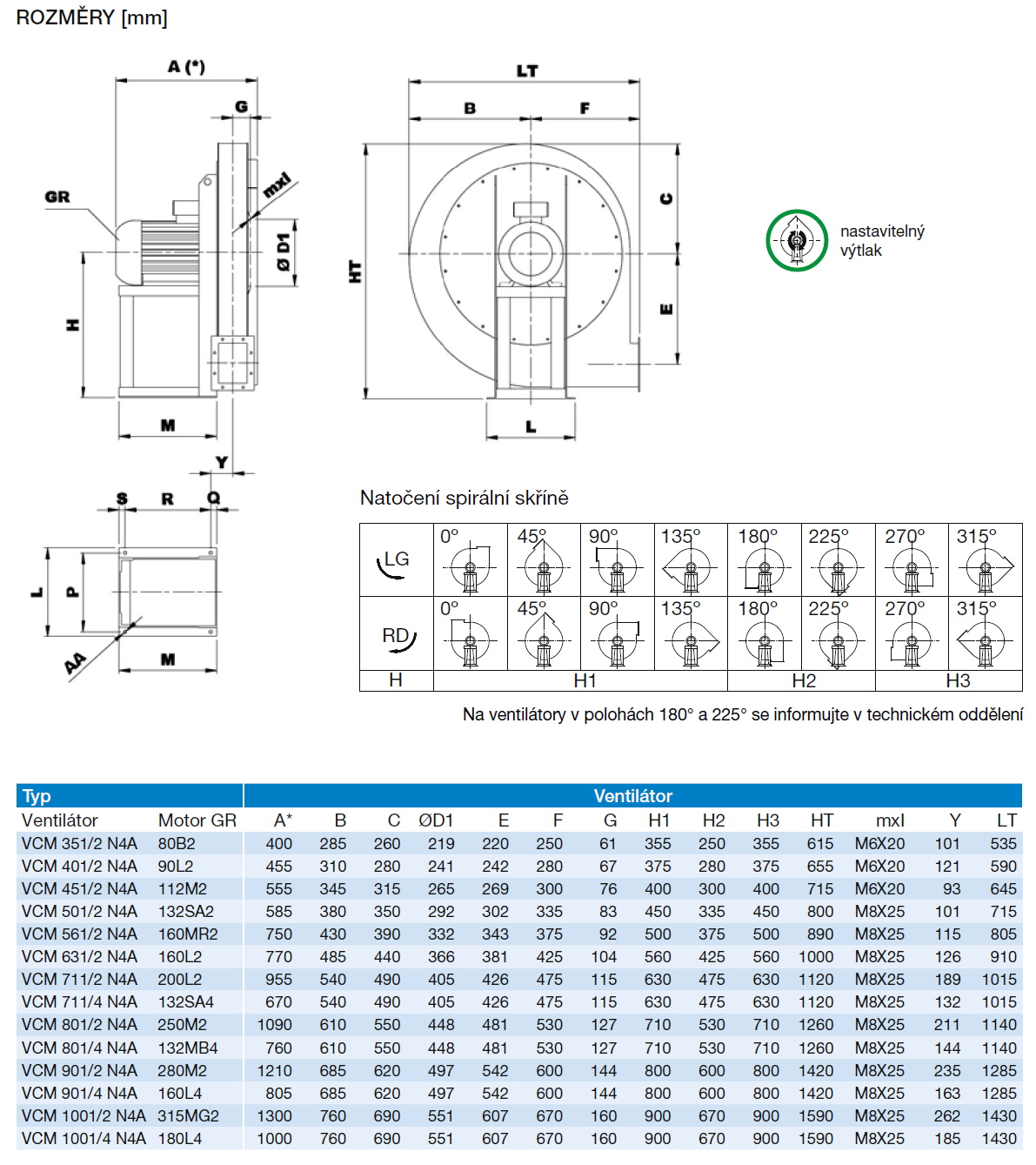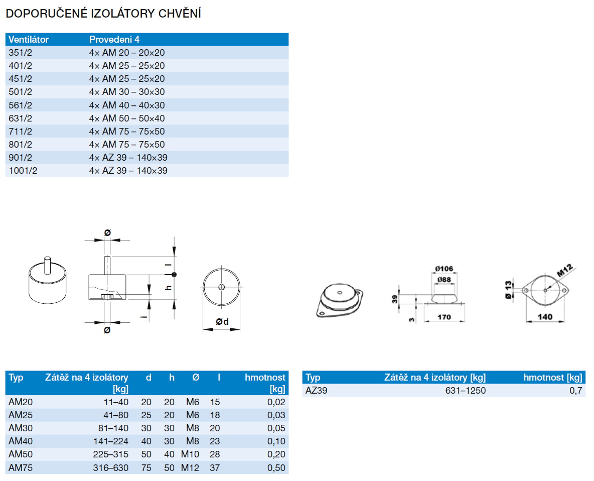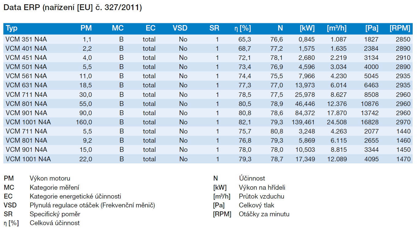 oběžné kolo s dozadu zahnutými lopatkami | tabulka použití | ERP data | izolátory chvění | |||